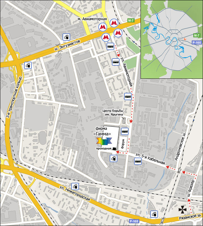 Наш адрес: г.Москва, ул. 5-Кабельная, стр.3 Территория фирмы "ГАММА" тел. (095) 974-31-20 E-mail: tis@firma-gamma.ru Контактные лица: Дубровская Анна, Кофман Елена Схема проезда: